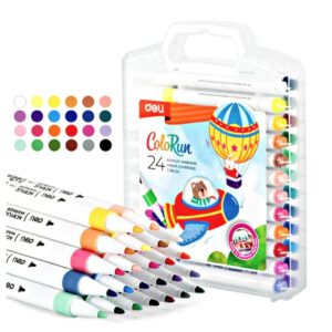 Deli ColoRun Acrylic Marker 24-Color Set (C189-24) – 1mm Fine Bullet Tip, Multi-Surface Paint Pens for DIY, Rock Painting, and Canvas
