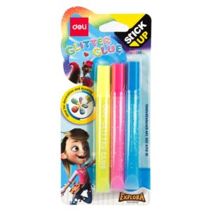 Deli Glitter Glue Set, 12ml Tubes, Washable & Solvent-Free, 3 Assorted Colors (Yellow, Pink, Blue),