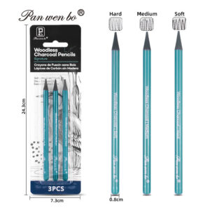 Panwenbo Professional Art Sketch Pencil Set 3pcs Woodless Charcoal