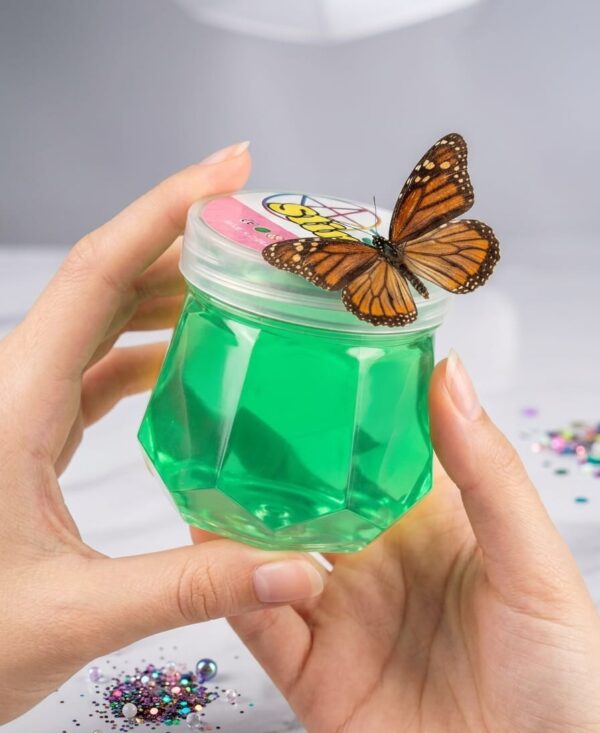 Butterfly Crystal Slime – Translucent Green Sensory Putty in Hexagon Jar
