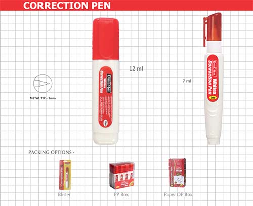 Available Correction Pen 1 mm fine metal tip Transparent Cap Easy to use Choke Free Fast Drying Confirms to ASTM D 4236/ = 2 Years shelf life