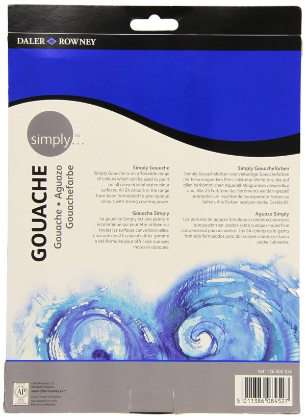 - 24 x 12ml (0.4 US fl. oz) tubes of Daler-Rowney Simply Gouache.