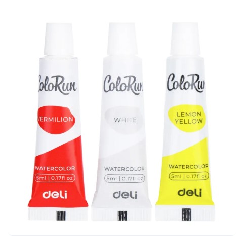 Deli ColoRun Watercolor Paint Set – 12 Vibrant Colors (5ml Tubes) with Free Brush – C18-12