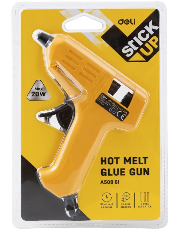 The Deli Hot Melt Glue Gun A500-61 is a reliable and easy-to-use tool designed for DIY projects, repairs, and craft work. It heats up quickly and provides a strong, consistent glue flow for clean and precise bonding. Ideal for home, school, office, and craft use, this glue gun works well on materials such as paper, plastic, wood, fabric, and more.
