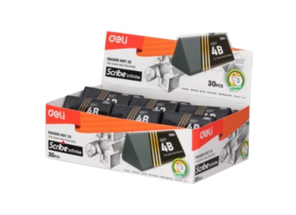 • Ideal for both exam and artistic use This Deli eraser features a distinctive black color with silver striped design and clear 4B marking. The soft compound formula is specifically engineered to remove graphite marks cleanly without damaging paper fibers, making it particularly suitable for standardized test forms and detailed artwork. The eraser maintains its effectiveness throughout use and its rectangular shape allows for precise application when needed.