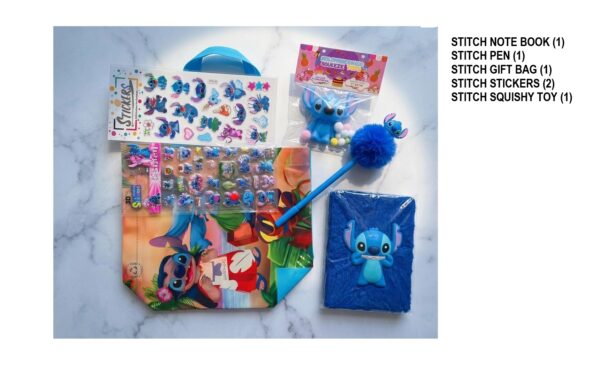 - 1x Stitch Gift Bag: A large, vibrant plastic or paper carrier bag featuring Lilo and Stitch, suitable for gifting the entire set .
