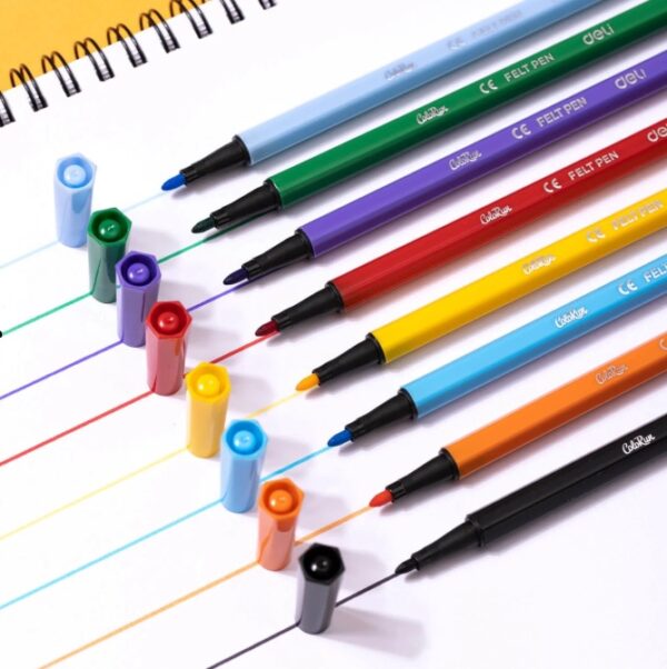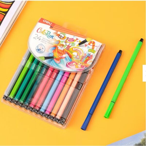 The Deli ColoRun Felt Pens (C157-24)are a set of 24 vibrant, water-based markers designed for a smooth and comfortable coloring experience. They are highly suitable for students, artists, and creative hobbyists due to their ergonomic design and child-friendly features.