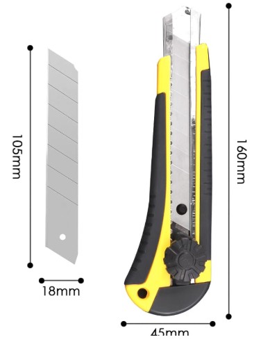Self-retractable slider and auto-lock slider for both safety cutting and continuous cutting. The multiple locking grooves allow free control of blade length with sharp precision.