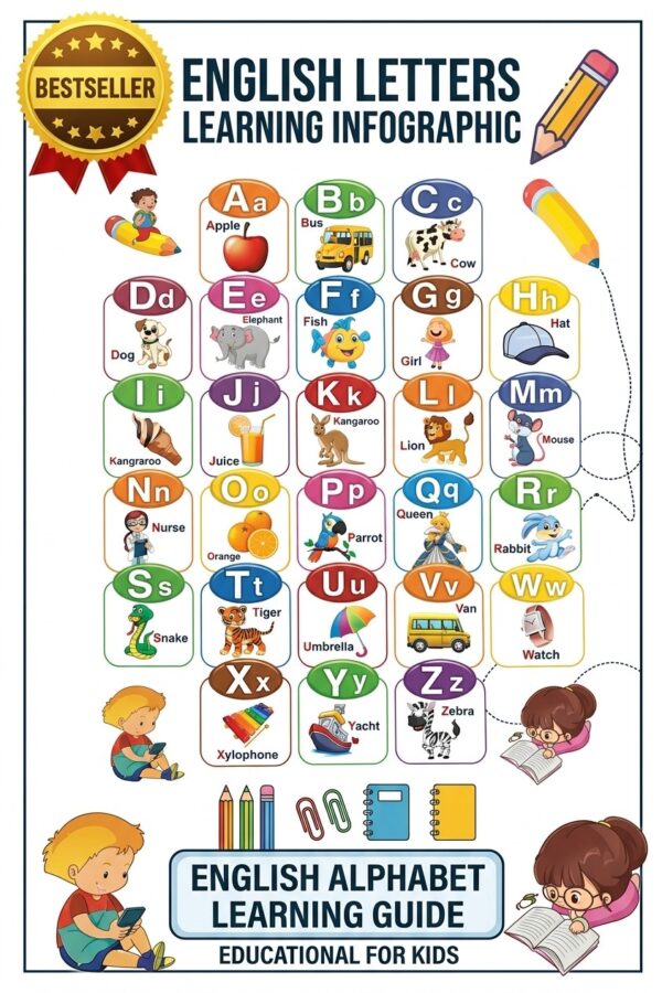 Set the stage for academic success with our English Alphabet Learning Poster. This comprehensive wall chart is a must-have for educators and parents looking to strengthen letter recognition and phonemic awareness in children aged 2–6.