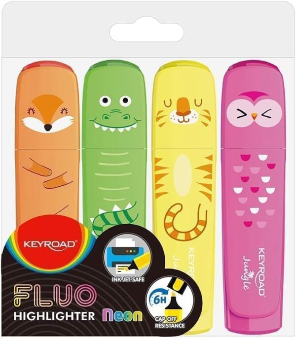 - Keyroad KR972176 Fluo Jungle Highlighter Pens Set of 4 Yellow / Orange Pink Green / Highlighter