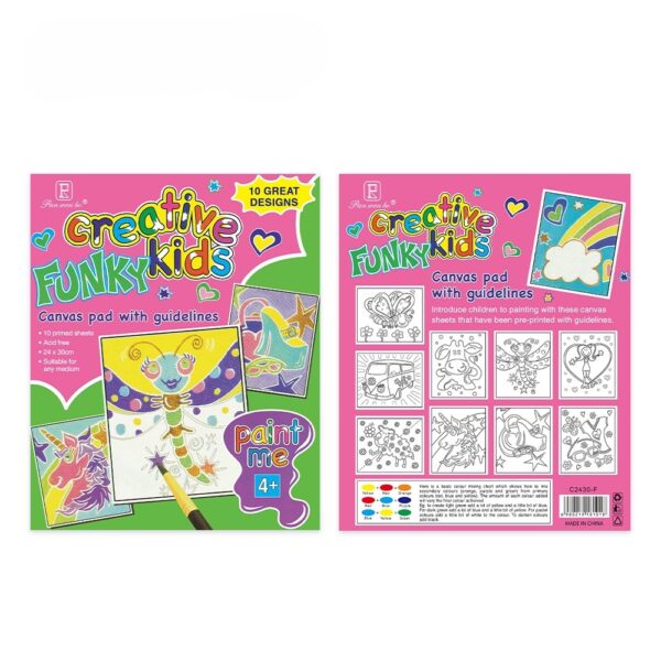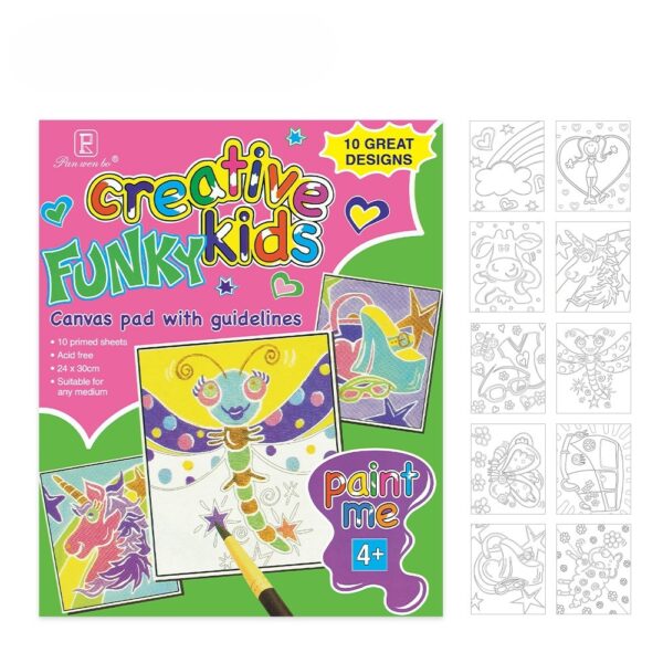 Pan Wen Bo Creative Funky Kids Canvas Pad – 10 Pre-Printed Artist Sheets (24x30cm)