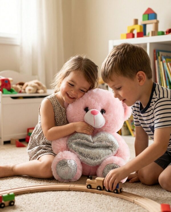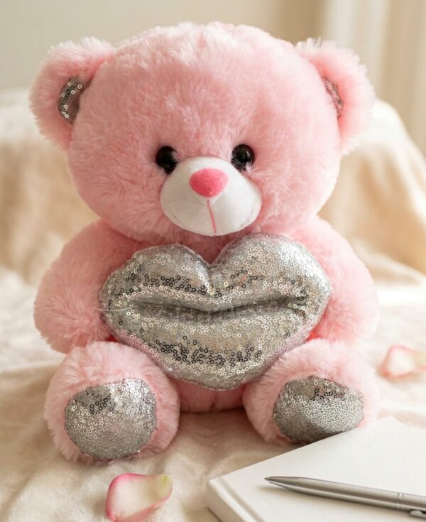 - Design: Features a large, shimmering heart on its chest, often made with reversible sequins.